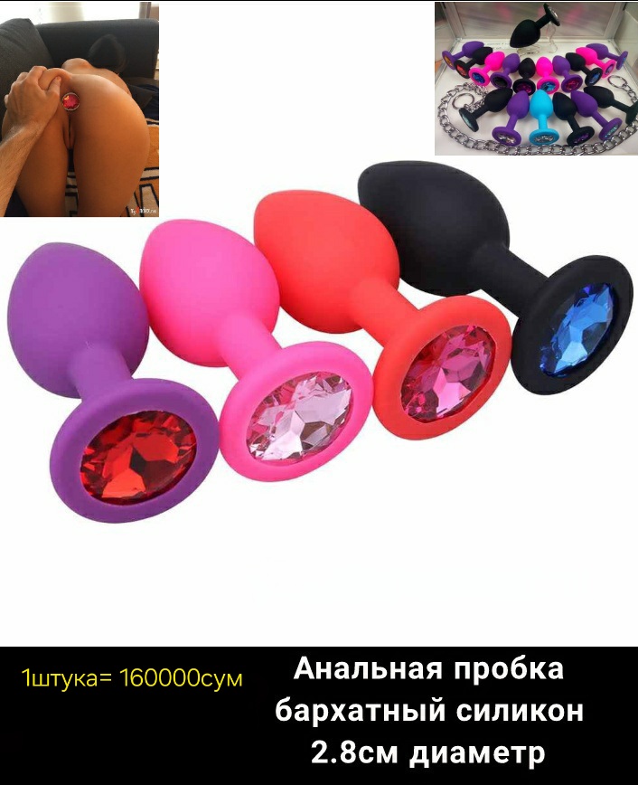Анальная пробка бархатный силикон камнем . Диаметр 2.8см