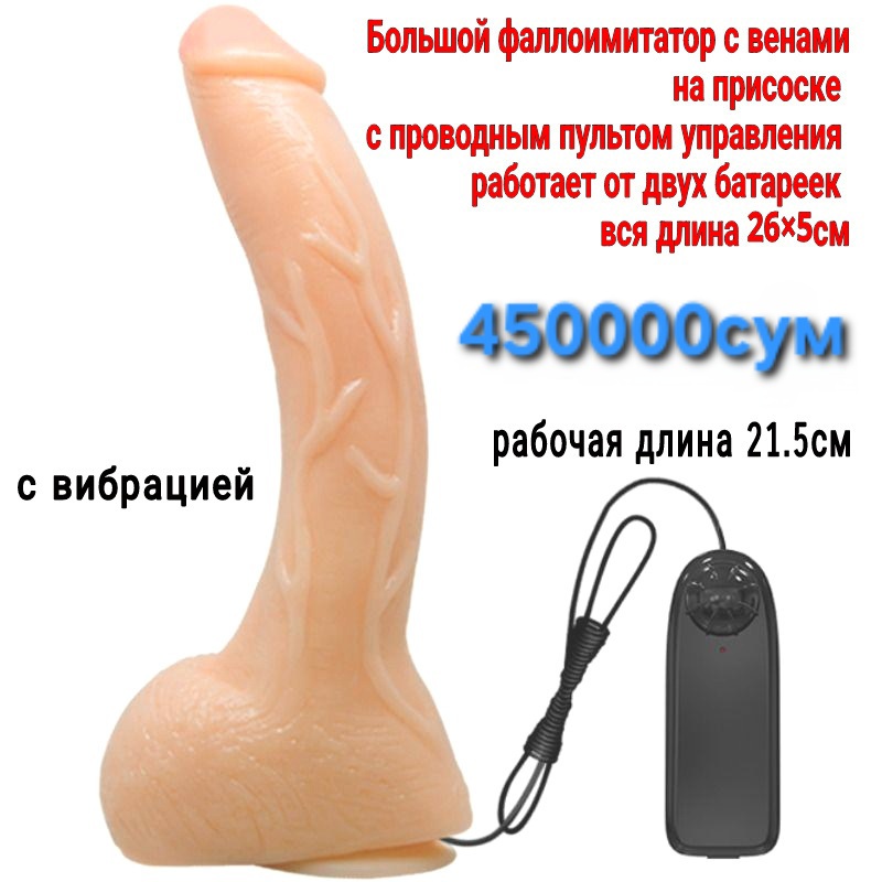Большой фаллоимитатор на присоске с вибрацией с проводным пультом управления Baile Barbara
