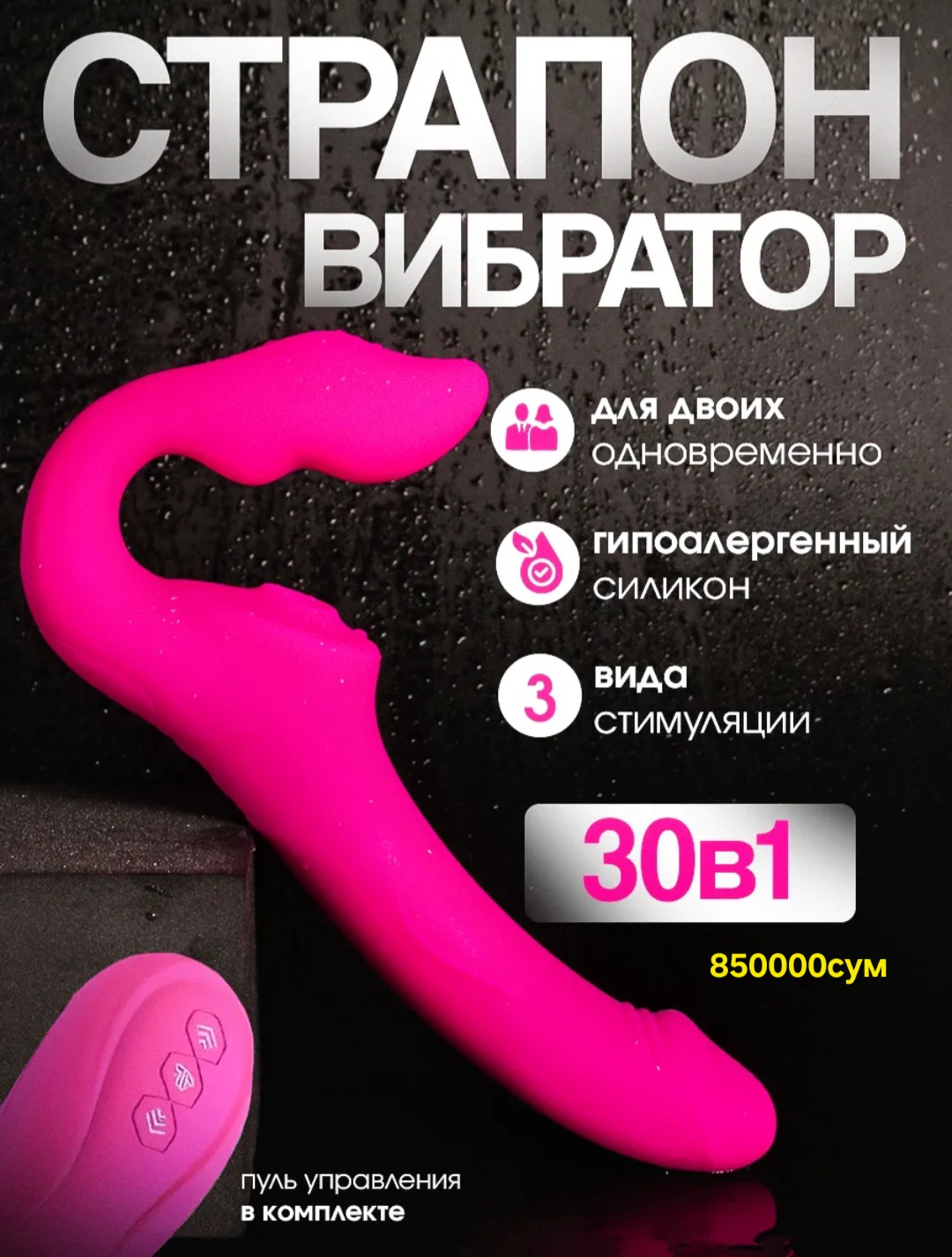 Безремневой страпон с двигающейся головкой и с вибрацией для пары
