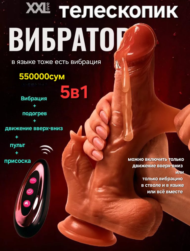 Фаллоимитатор телескопик с вибрацией с двойной кожей на присоске с беспроводным пультом управления с подогревом