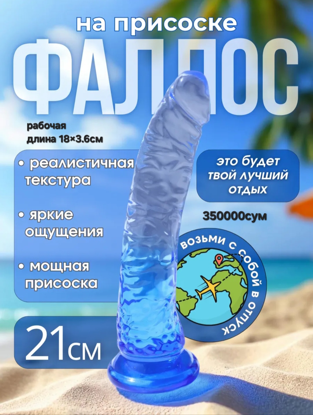 Фаллоимитатор прозрачный на присоске без мошонки наполовину голубой