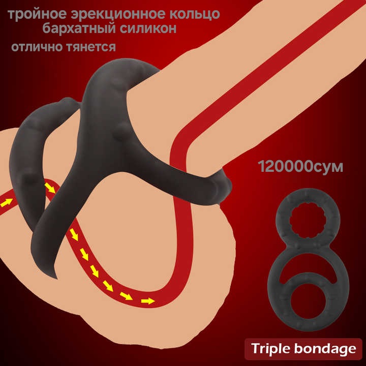 Вибратор тройной Гармошка очень мягкий и нежный Медицинский силикон