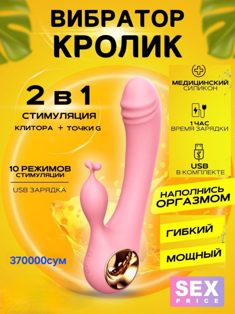 Фаллоимитатор Розовый Двойной вибратор Кролик