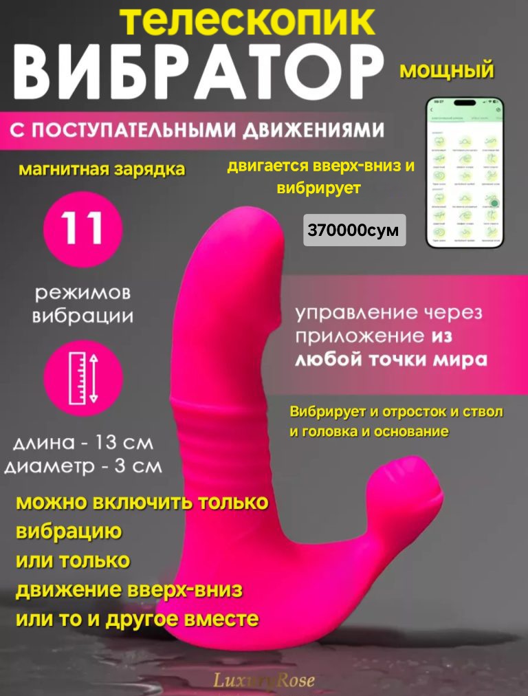 Смарт вибратор телескопик розовый с клиторальным отростком