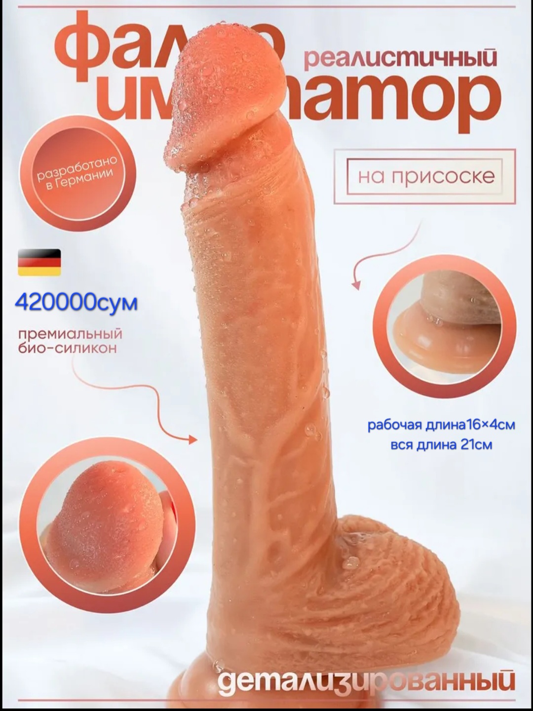 Фаллоимитатор реалистик гибкий мягкий на присоске с мошонкой пр-во Германия 100%оригинал
