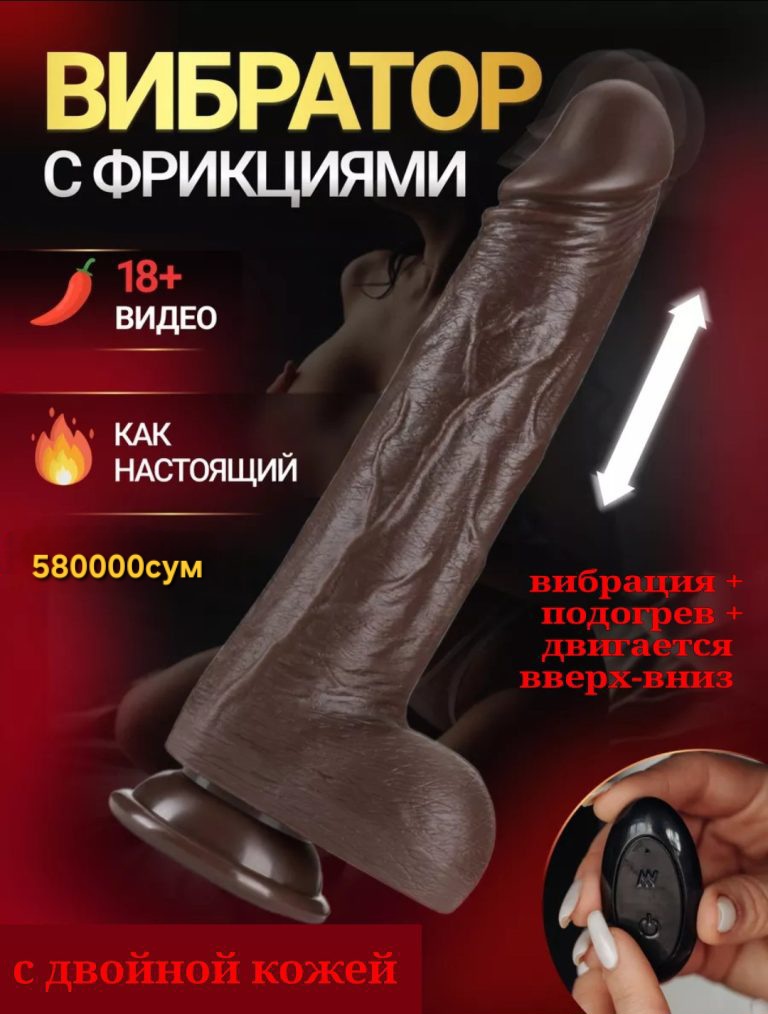 Фаллоимитатор с двойной кожей Шоколад телескопик с пультом