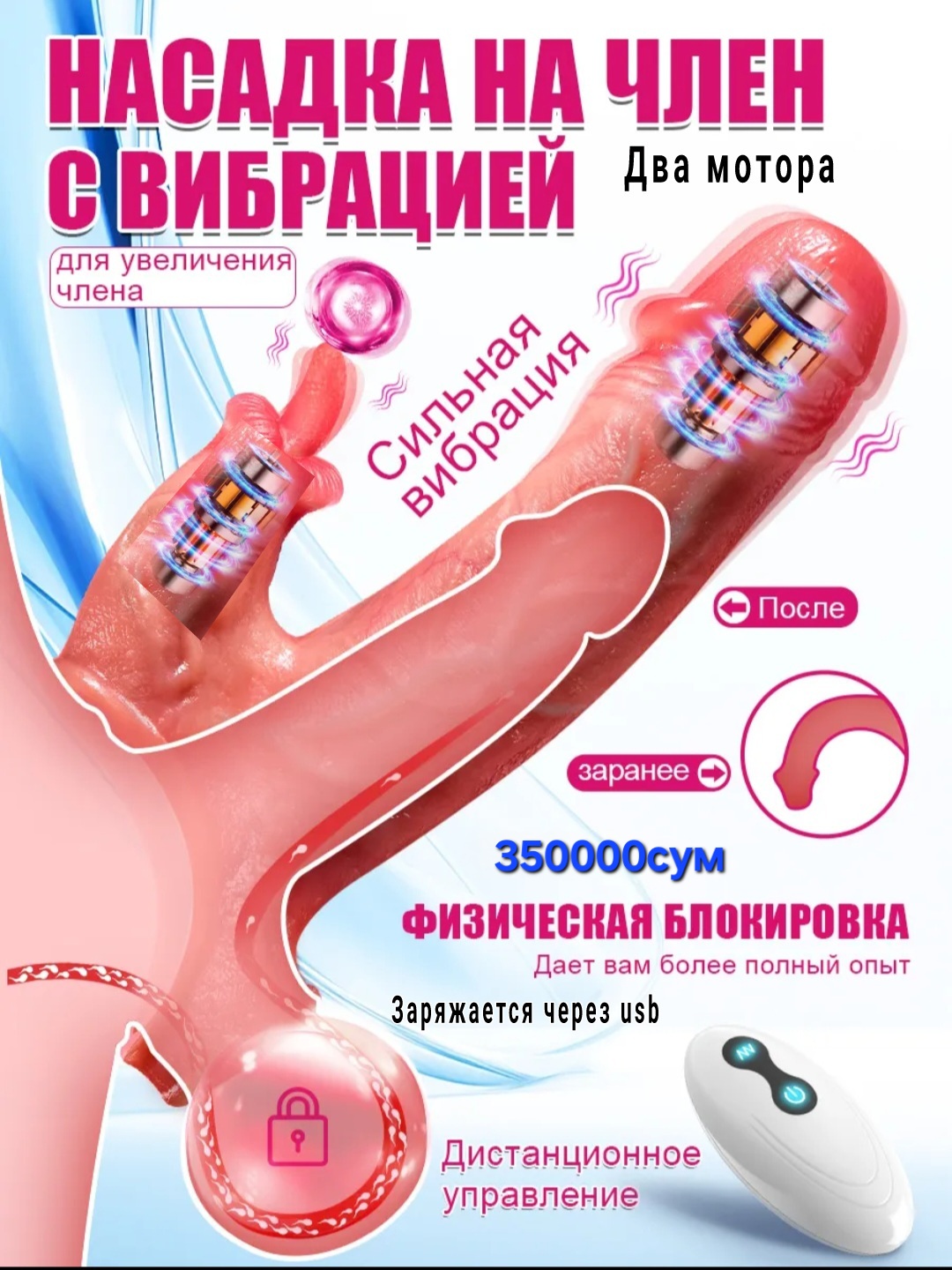 Насадка с вибрацией с язычком с кольцом для поддержки и с беспроводным пультом