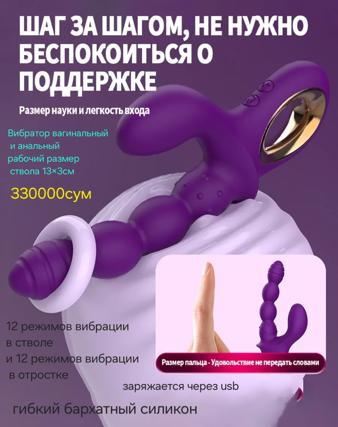 Вибратор тройной Гармошка очень мягкий и нежный Медицинский силикон