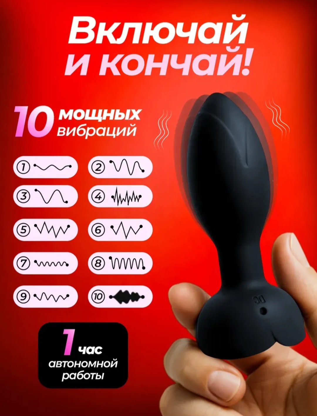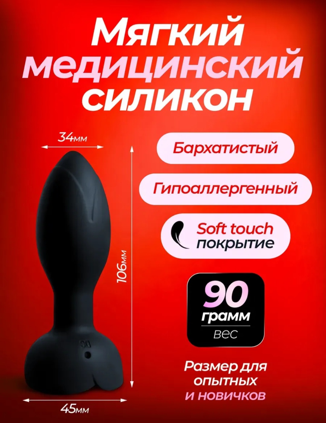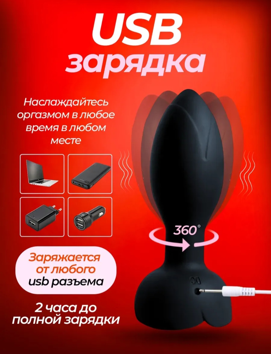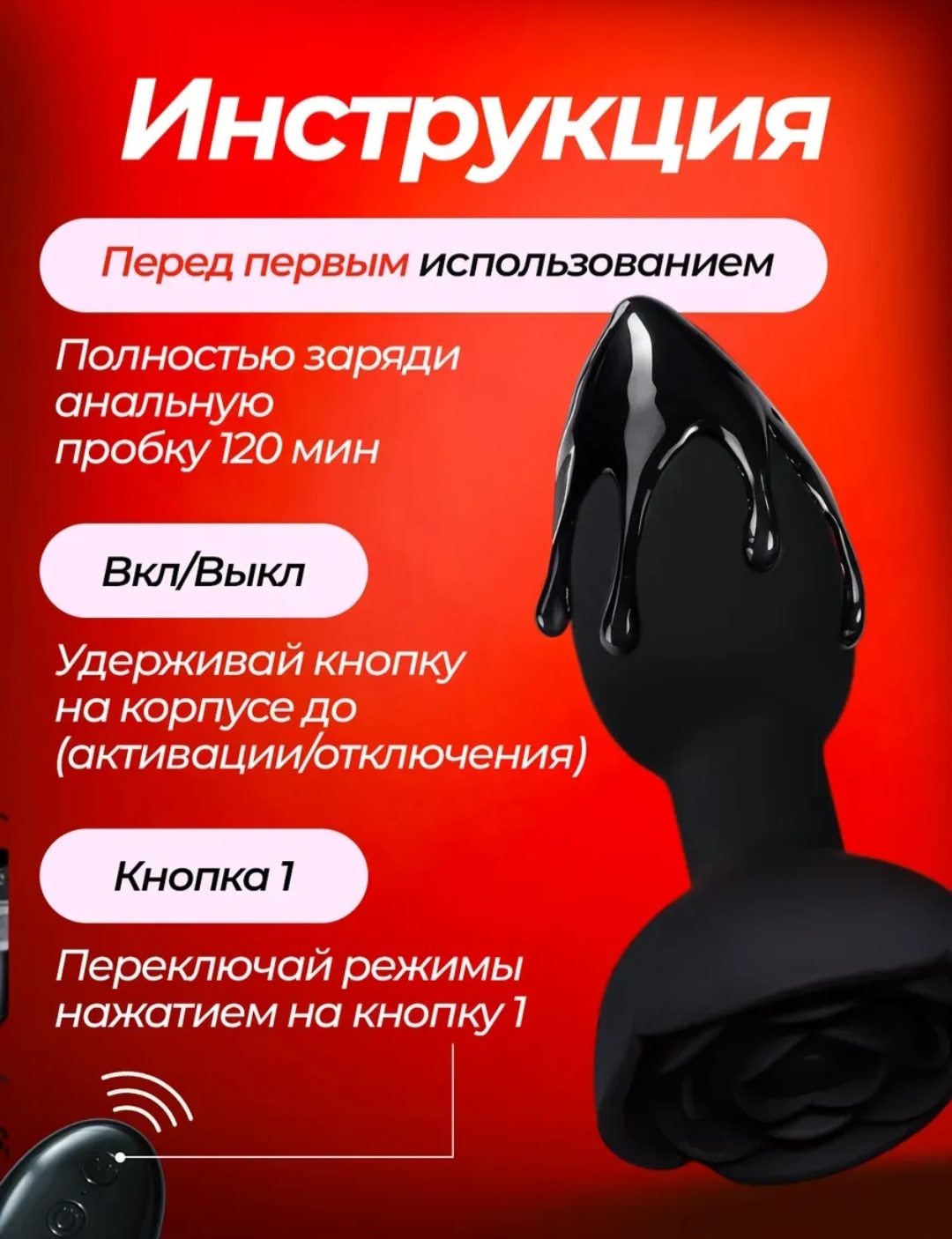 Анальная пробка Роза черная ротатор с беспроводным пультом управления