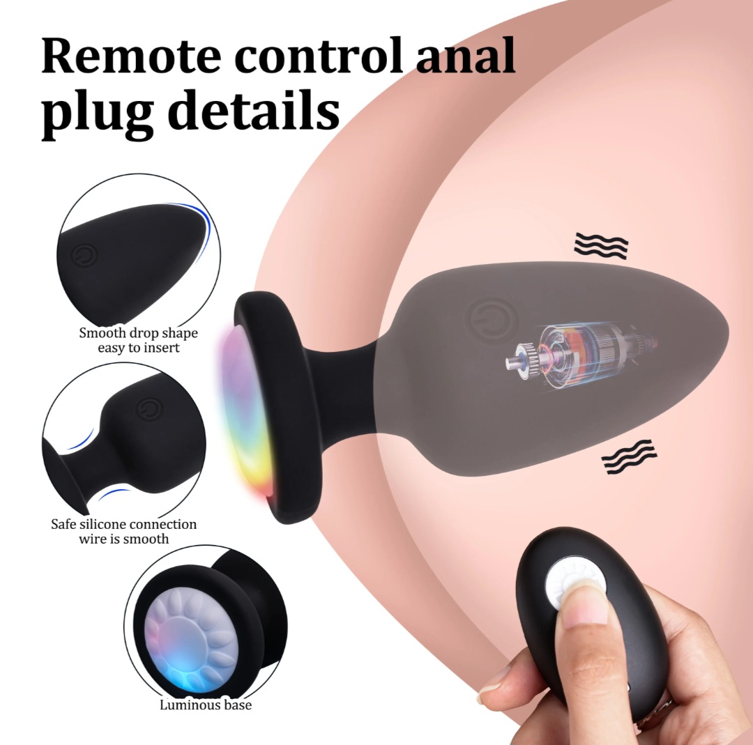 Анальная пробка с вибрацией с подсветкой с беспроводным пультом управления диаметр 4см