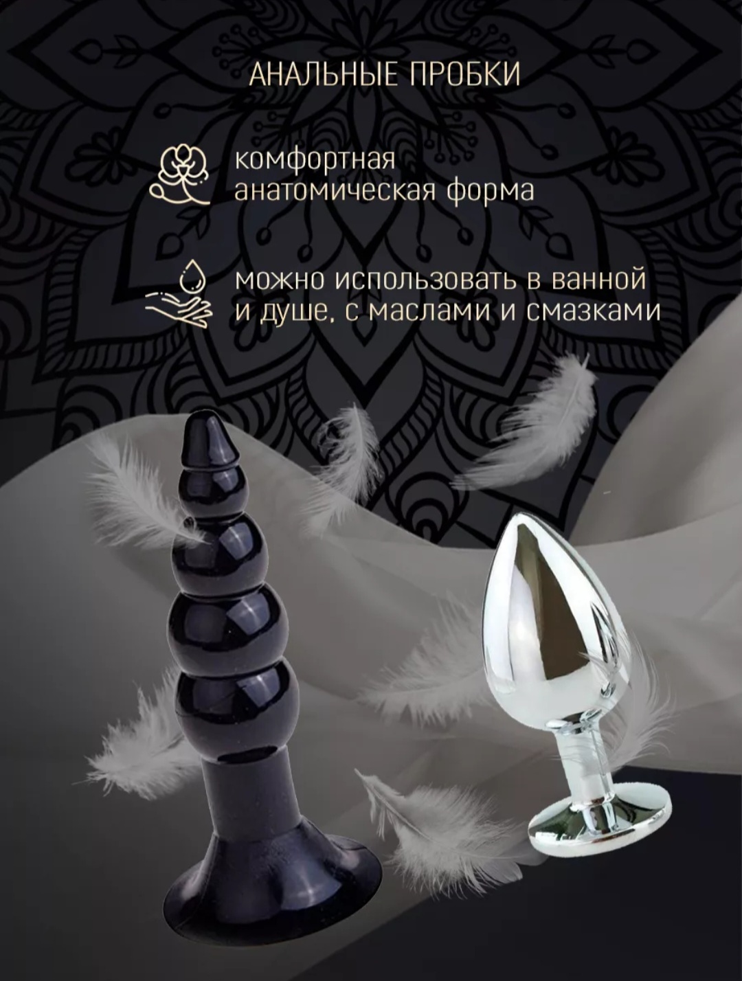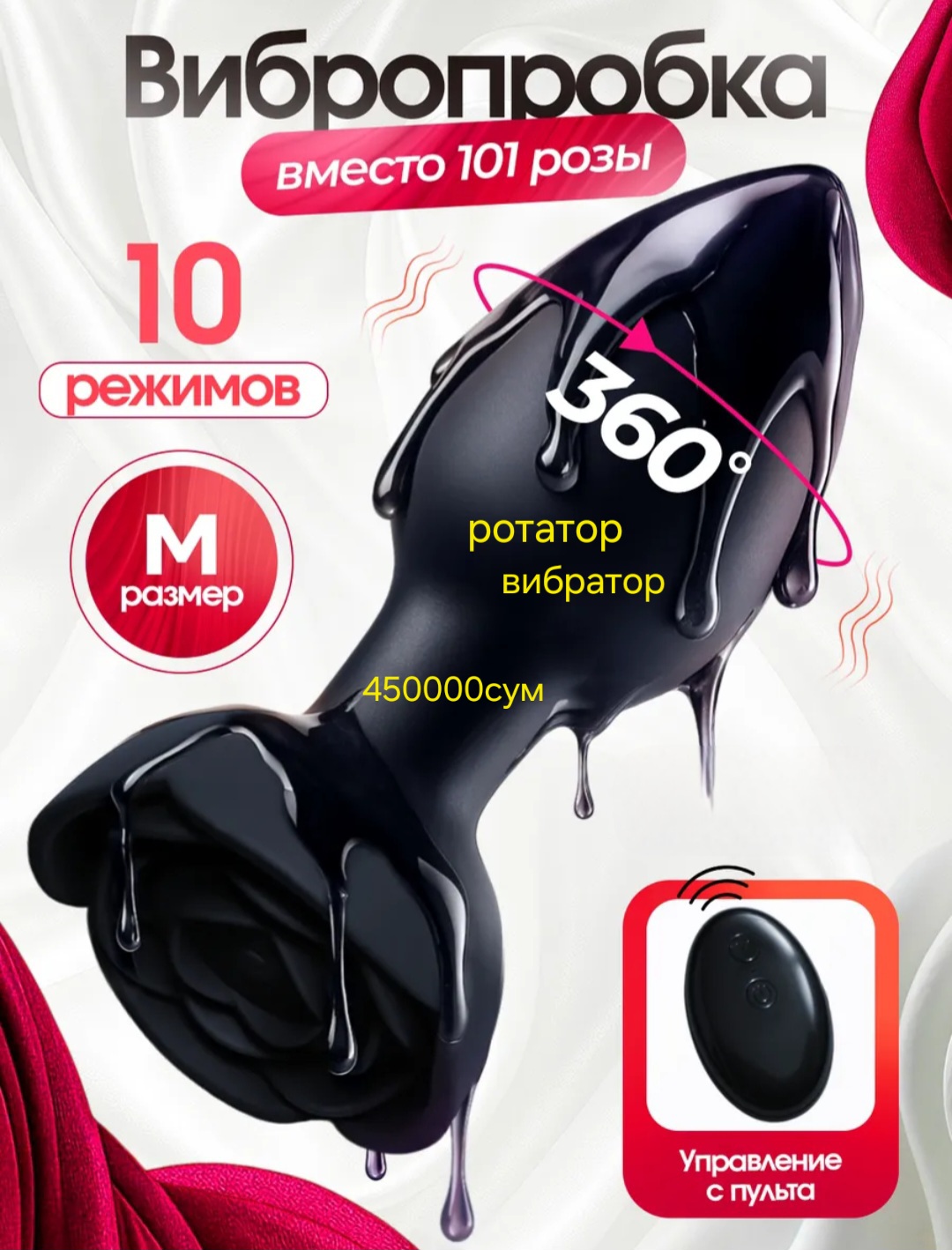 Анальная пробка Роза черная ротатор с беспроводным пультом управления