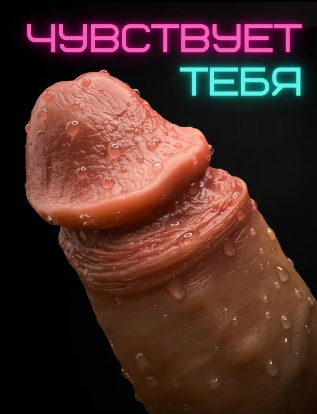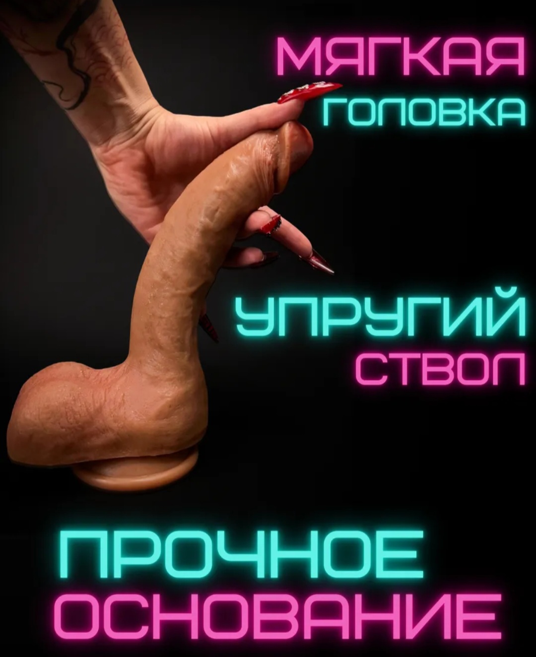 Большой фаллоимитатор на присоске киберкожа с мошонкой