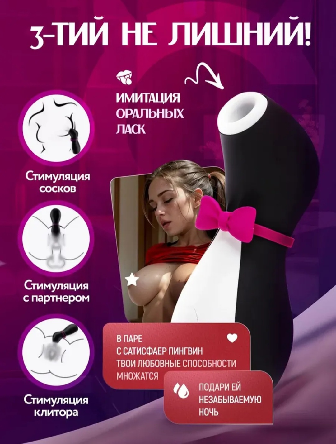 Вибратор Сосущие губы с отростком