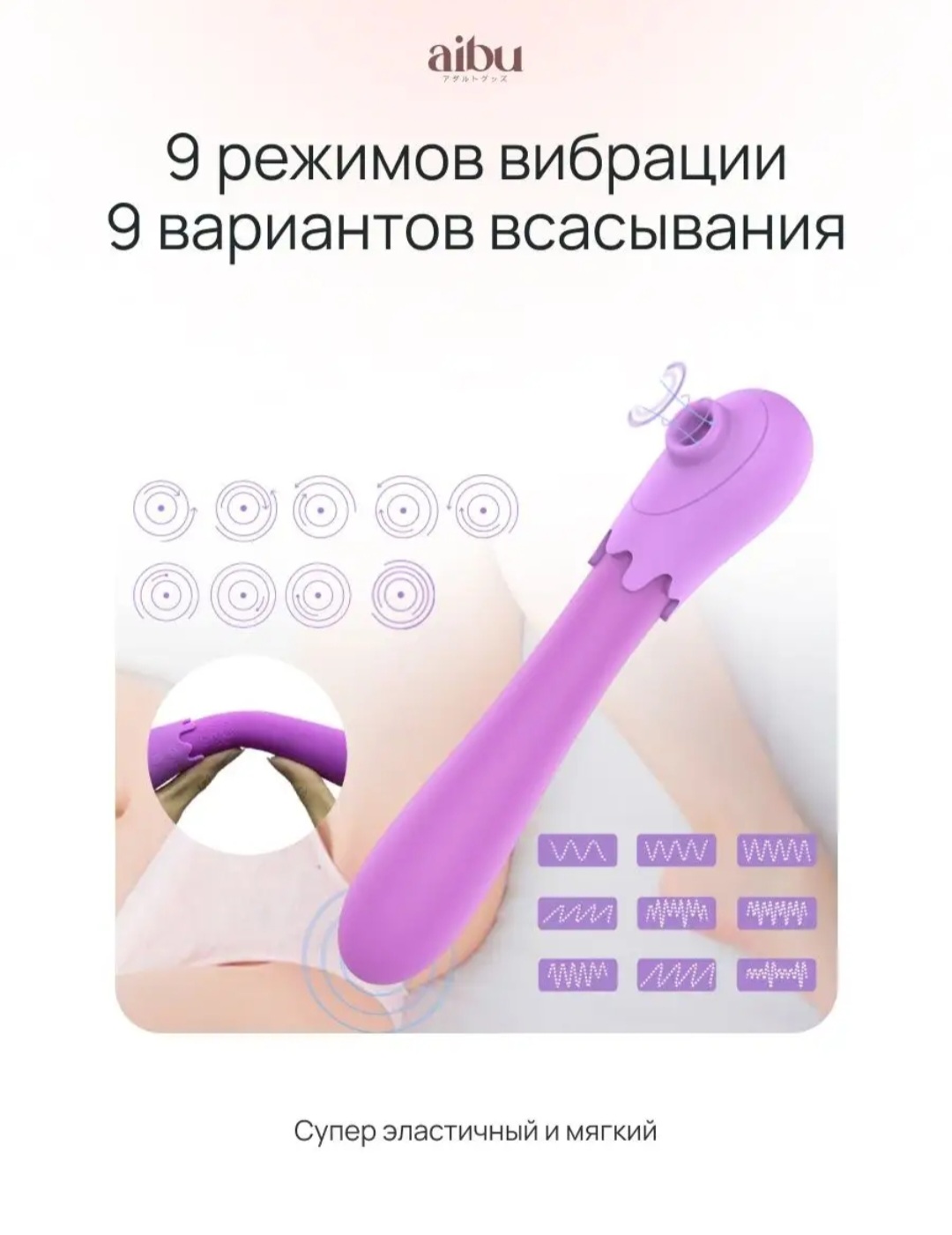 Вибратор двусторонний вакуумно-волновой гибкий от бренда Aibu