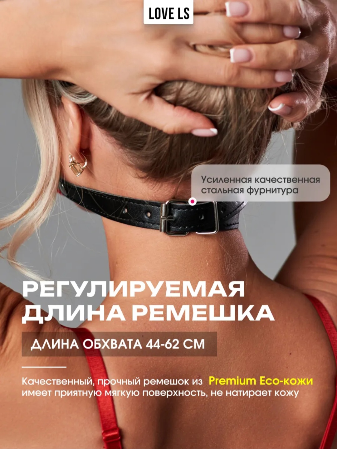Ремешок из кожзама надёжно крепится на шее.