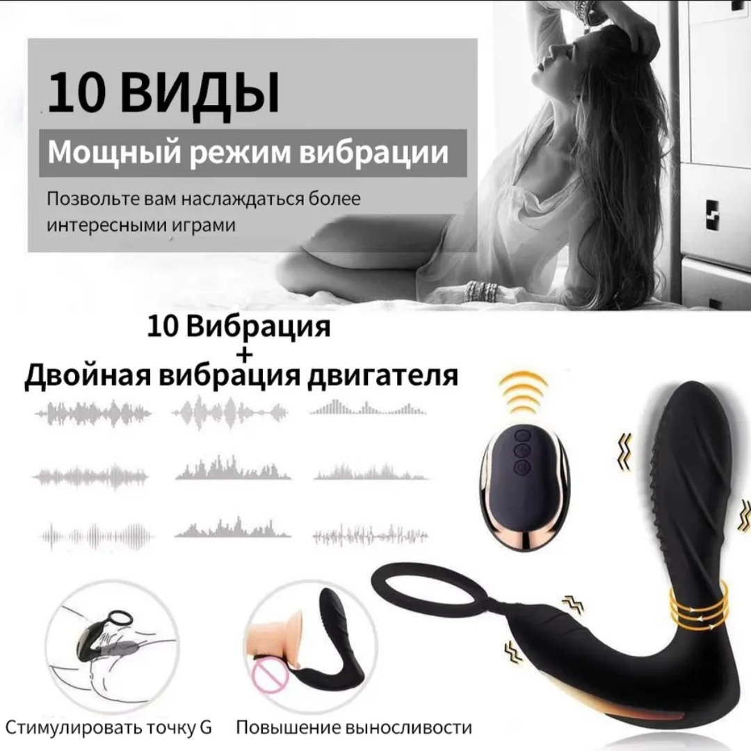 Массажёр простаты с кольцом и с беспроводным пультом управления