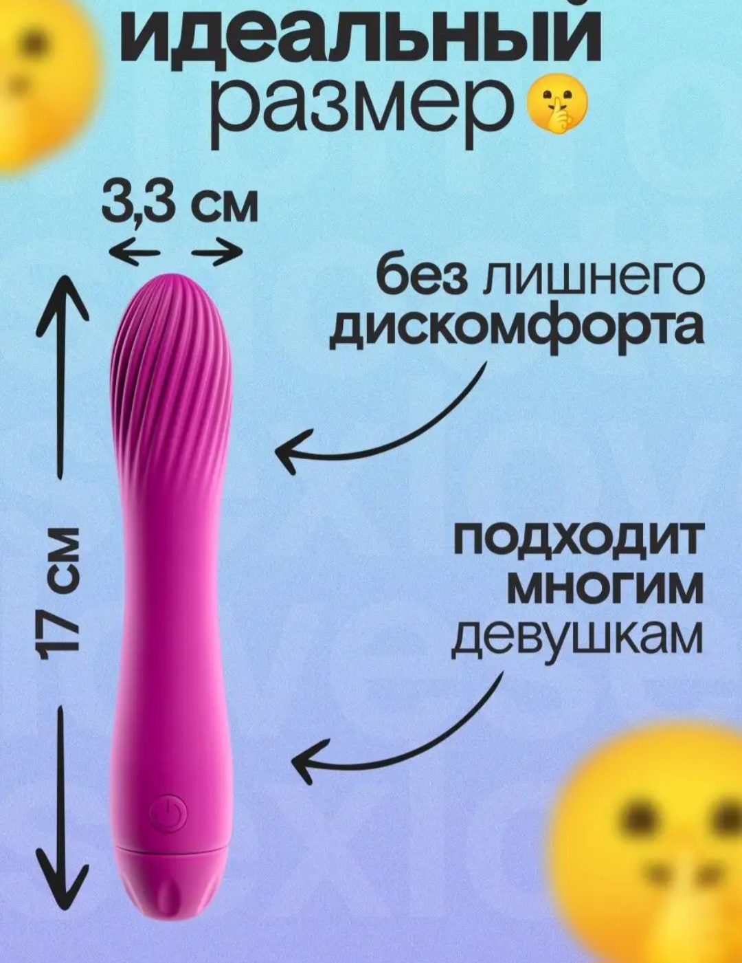 Этот вибратор для женщин можно использовать как для стимуляции клитора, так и для стимуляции влагалища. Он имеет эргономичную форму и его очень удобно держать в руке.Он очень гибкий, хоть и небольшой.У него разные режимы вибрации.Высокоинтенсивные режимы затронут только поверхность вашегоклитора, а низкочастотные достанут самые глубинные места вашего органа.За 2 минуты вы получите столько удовольствия, сколько никогда не получали от кунилингуса. Получай удовольствие когда тебе захочется.Ведь теперь твое удовольствие в твоих руках!А еще у него никогда не заболит голова.Он никогда не устанет. Будет всегда трезвыми всегда готов сделать тебе приятное))