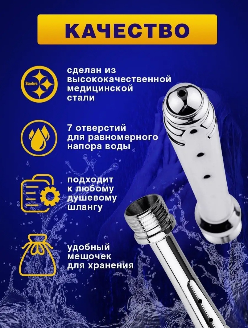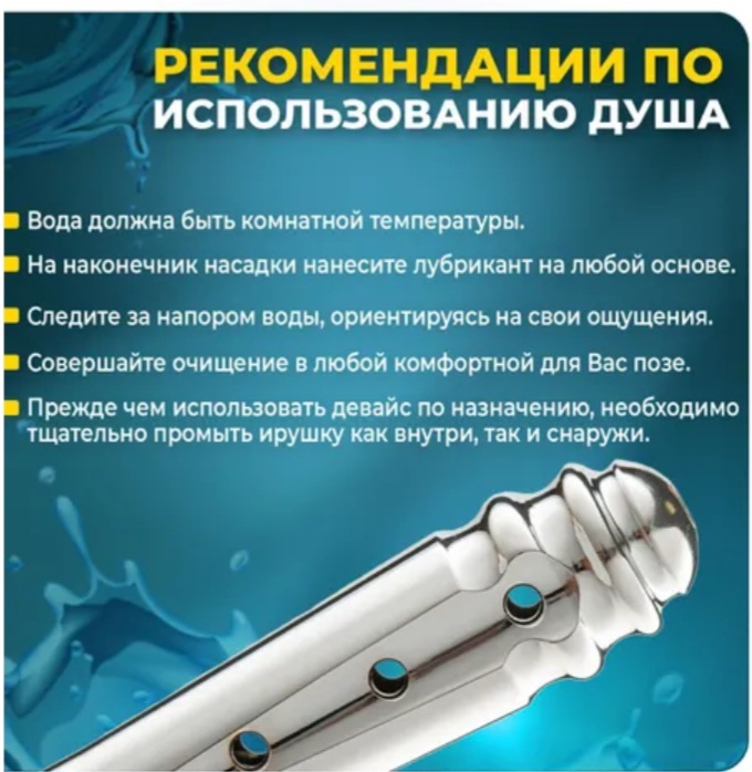 Насадка на душ анальная является очень важным и полезным аксессуаром, который позволяет быстро и легко подготовиться к анальному сексу. С помощью данного изделия можно проводить нужные гигиенические процедуры с дополнительным эффектом анальной стимуляции. Благодаря каплевидной форме втулки анальный душ обеспечивает комфортное введение без создания малейшего дискомфорта. За счёт гладкой головки аксессуара обеспечивается лёгкость, безболезненность и безопасность входа без вреда для чувствительной части тела. Такая анальная клизма выполняется с резьбой универсальной формы, благодаря чему идеально подходит для любых типов душевых шланг. Насадка на душ может смело использоваться во время эротических ласк с водой (обеспечивает как анальную, так и вагинальную стимуляцию). Аксессуар в виде анального расширителя гарантирует приятный и возбуждающий интимный массаж, с помощью которого можно быстро довести партнёра до экстаза. Для получения удовольствия от процесса нужно лишь направить водяную струю в необходимую зону воздействия. Для изготовления анальной насадки на душ используется высококачественная нержавеющая сталь, поэтому интимный аксессуар является полностью безвредным. Использование клизмы позволяет чувствовать себя комфортно и уверенно на протяжении полового акта, ведь анальный секс будет не только приятным, но и гигиеничным, чистым.