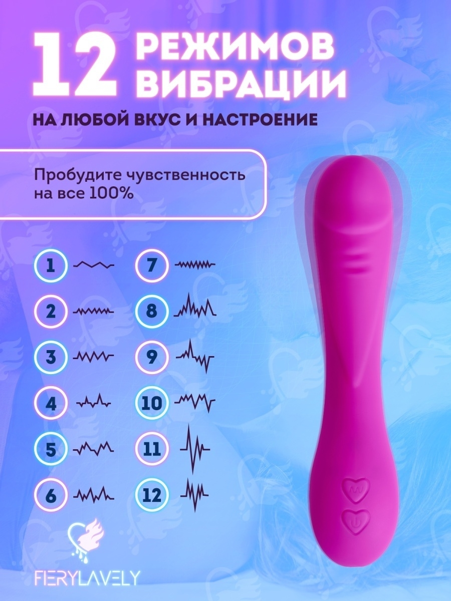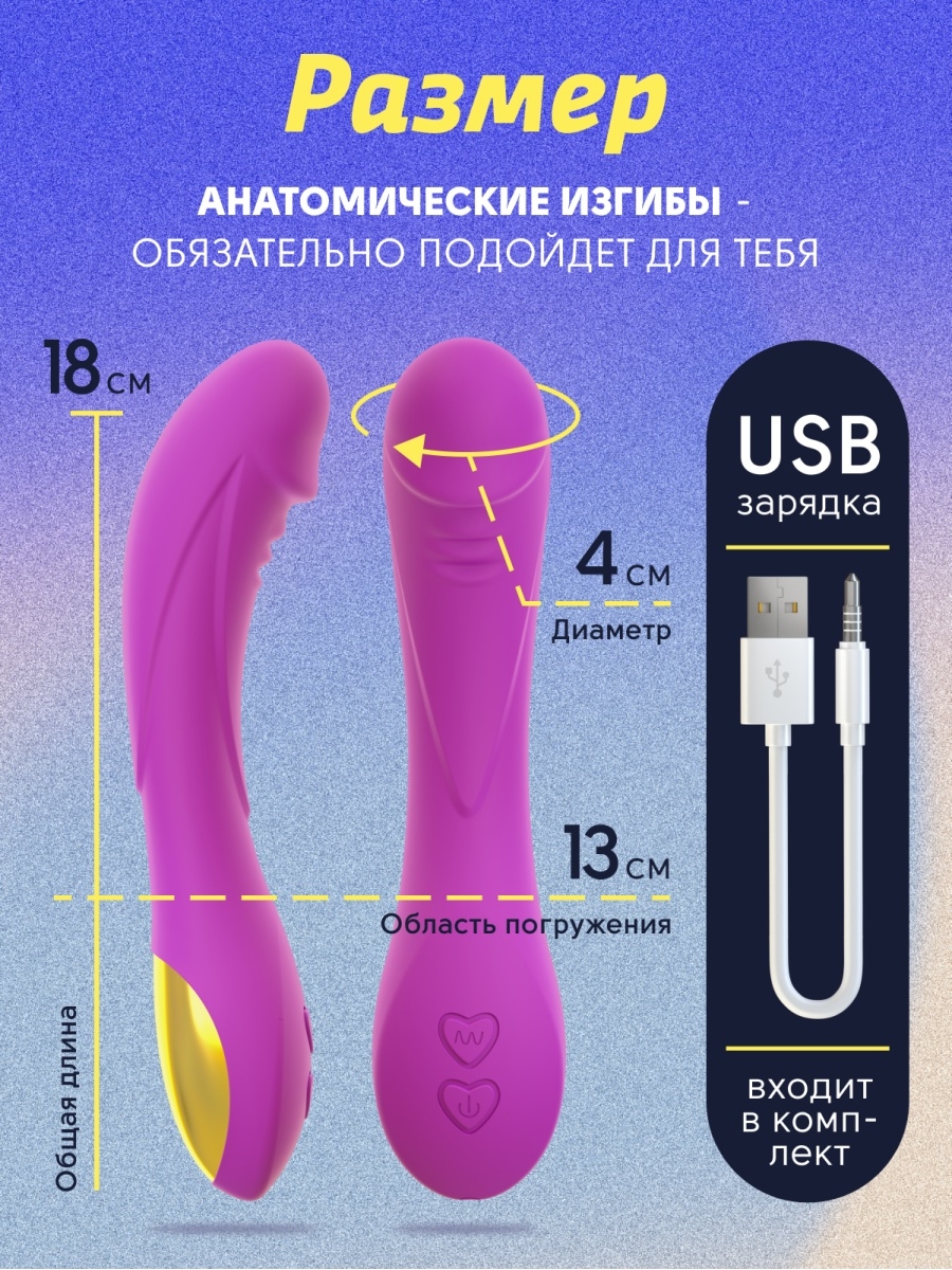 Вибромассажер — фаллоимитатор реалистичный, вы решаете, с какой интенсивностью себя стимулировать — 12 степеней. Гибкость позволяет стимулятору доставлять вагинальное и клиторальное наслаждение.Оптимальный размер и эргономичная форма делают его удобным для новичков и опытных женщин.Это взрослая сексигрушка, поэтому в ней нет батареек, зато есть аккумулятор, способный выдать целых 2 часа непрерывного удовольствия.А в комплекте ещё удобный чехол, чтобы брать игрушку с собой куда угодно.Всё управление происходит 1 кнопкой, чтобы вы ни на что не отвлекались, кроме наслаждения от мастурбации. Отличная возможность разнообразить секс с партнёром, заставив его доставлять клиторный оргазм, а прибором стремясь к вагинальному.Хотите двойного наслаждения?Ложитесь в ванну с вибратором и массируйте им свой клитор или точку G. Вода ему не страшна. Никакого шума во время работы.