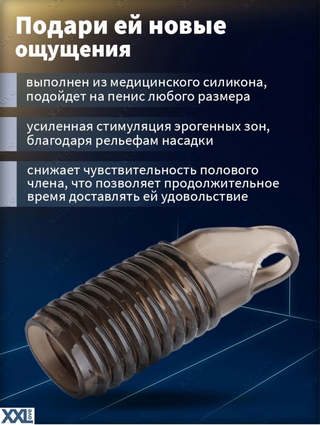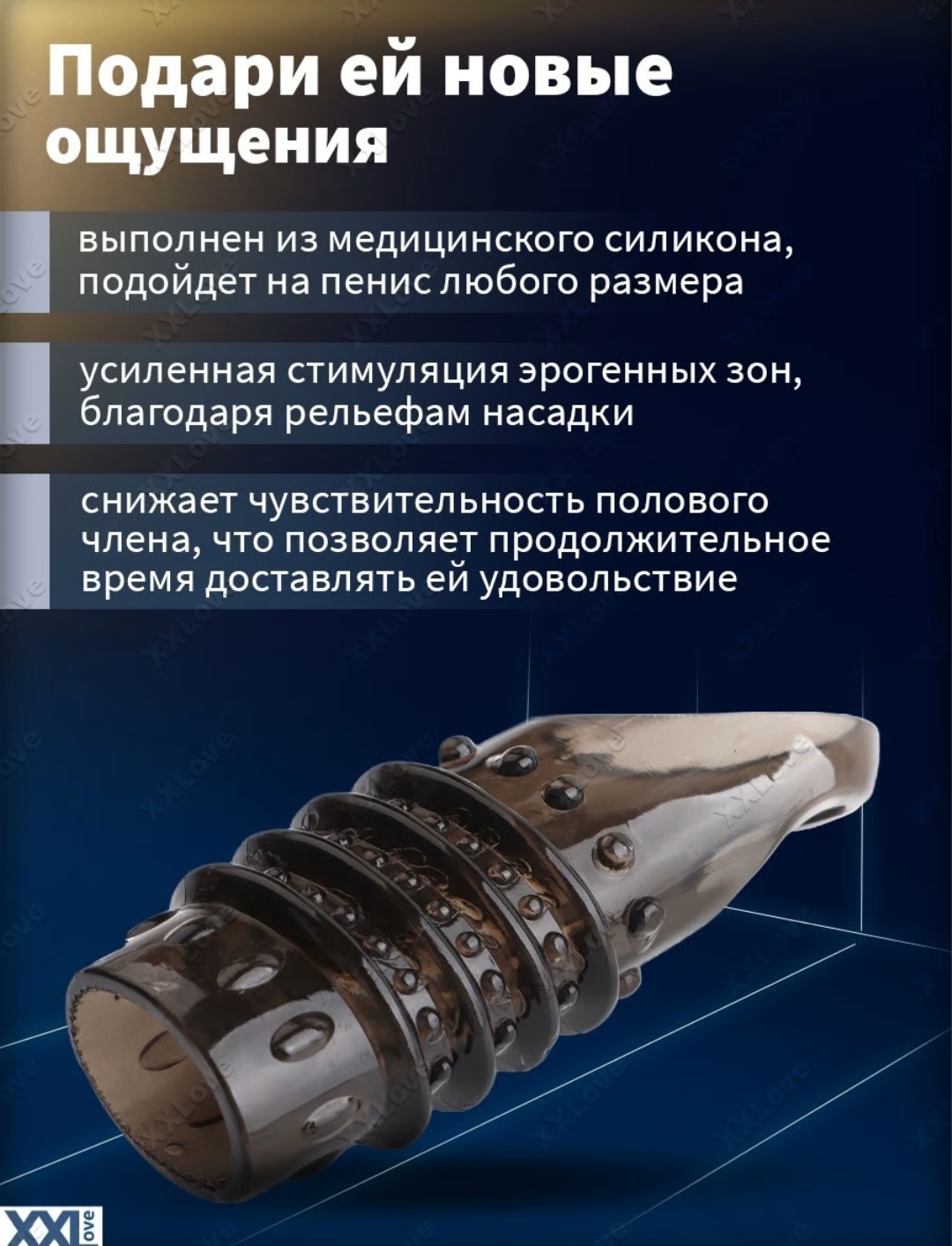 Превратите ваш пенис в невероятный источник удовольствия с насадками XLovers. Теперь вы будете в себе уверены и почувствуете себя мужчиной, которым всегда хотели быть и удовлетворить своего партнера! Больше удовольствия для вашего партнера и для вас. Насадка изготовлена из высококачественного эластомера, мягкого и упругого на ощупь. Подходит для всех! Эластичная насадка отлично растягивается. Имеется кольцо для мошонки, чтобы во время полового акта насадка не спадала.