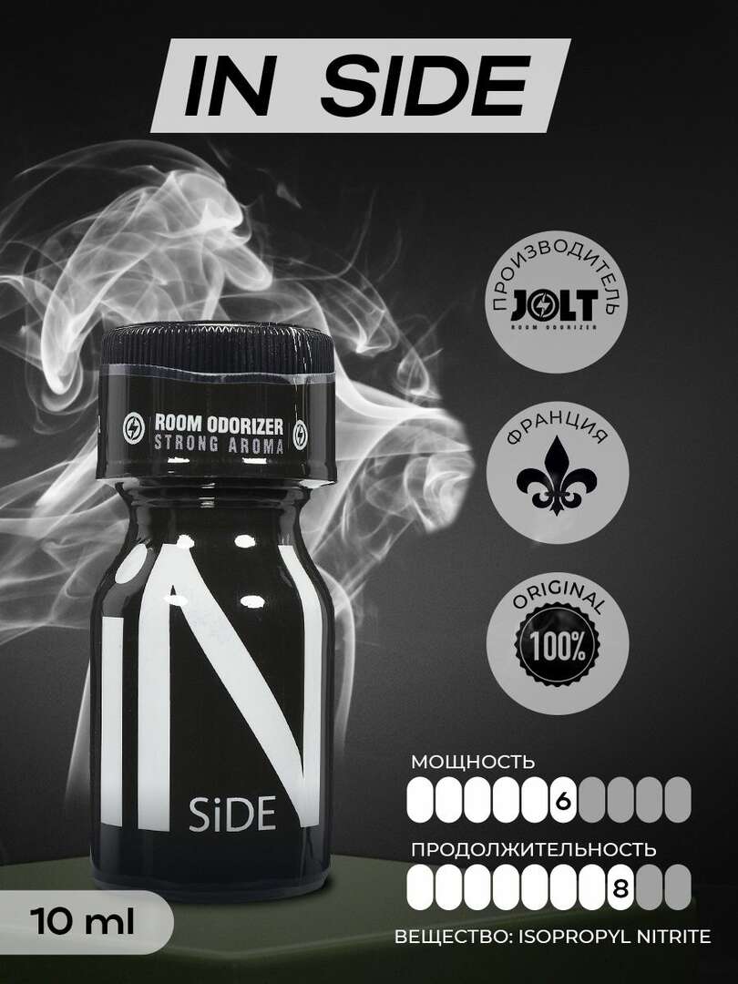 Попперс Inside поможет погрузиться в самую гущу событий и наполнить жизнь яркими впечатлениями. Французский препарат попперс In Side отличается от других релаксантов своим весьма нежным ароматом на основе изопропил нитрита и продолжительным эффектом. Желаете быть всегда в центре интересных событий и не упустить в жизни самое интересное? Тогда рекомендуем данный попперс купить и по-настоящему испытать самое удивительное с poppers INSIDE.
