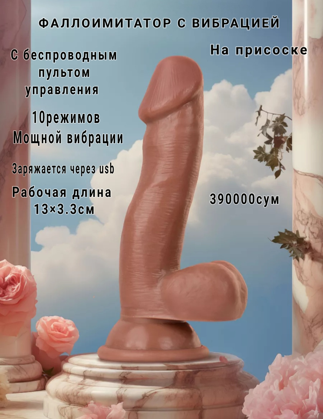 Фаллоимитатор коричневый на присоске с вибрацией (сьёмная вибропуля мощная) с мошонкой