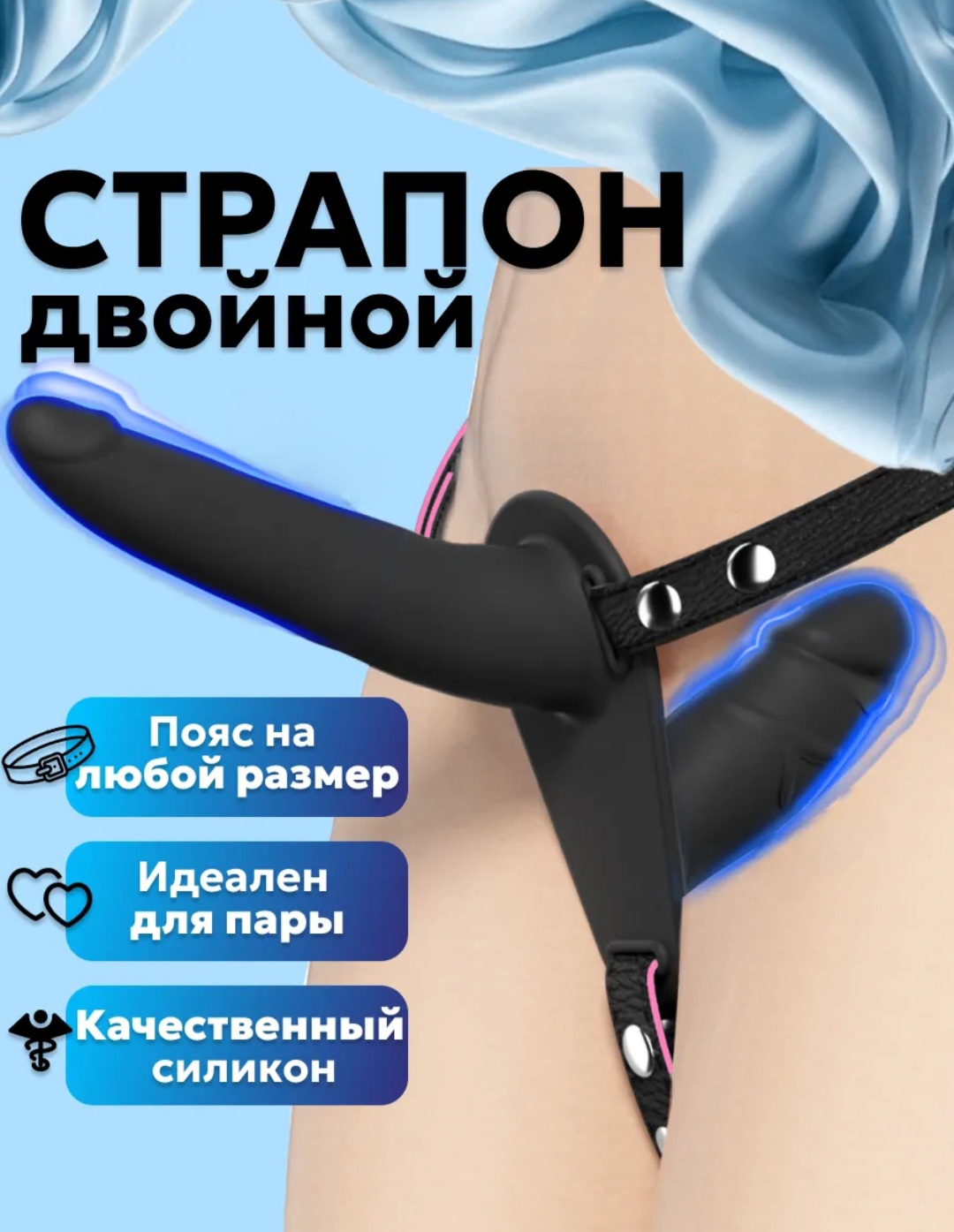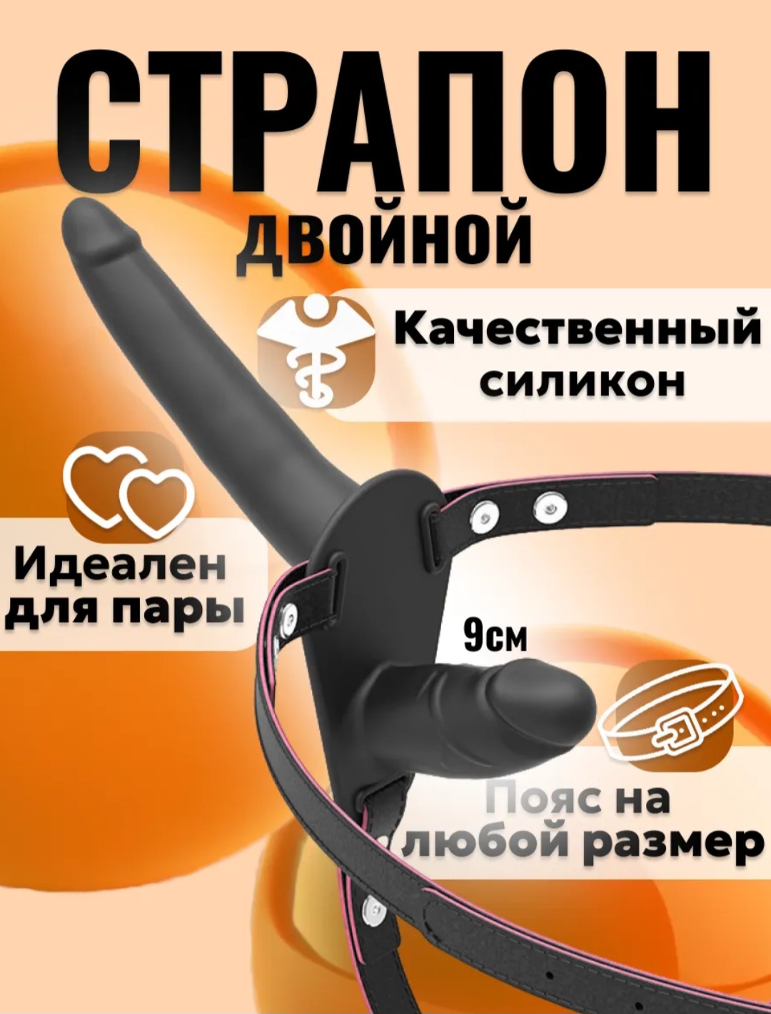 Страпон двусторонний чёрный