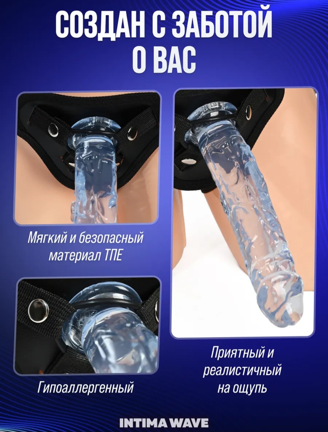 Страпон Фалос на присоске прозрачный и трусики — ремни в комплекте