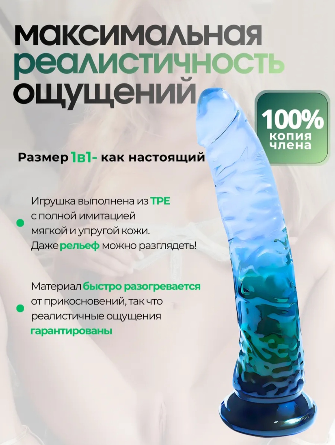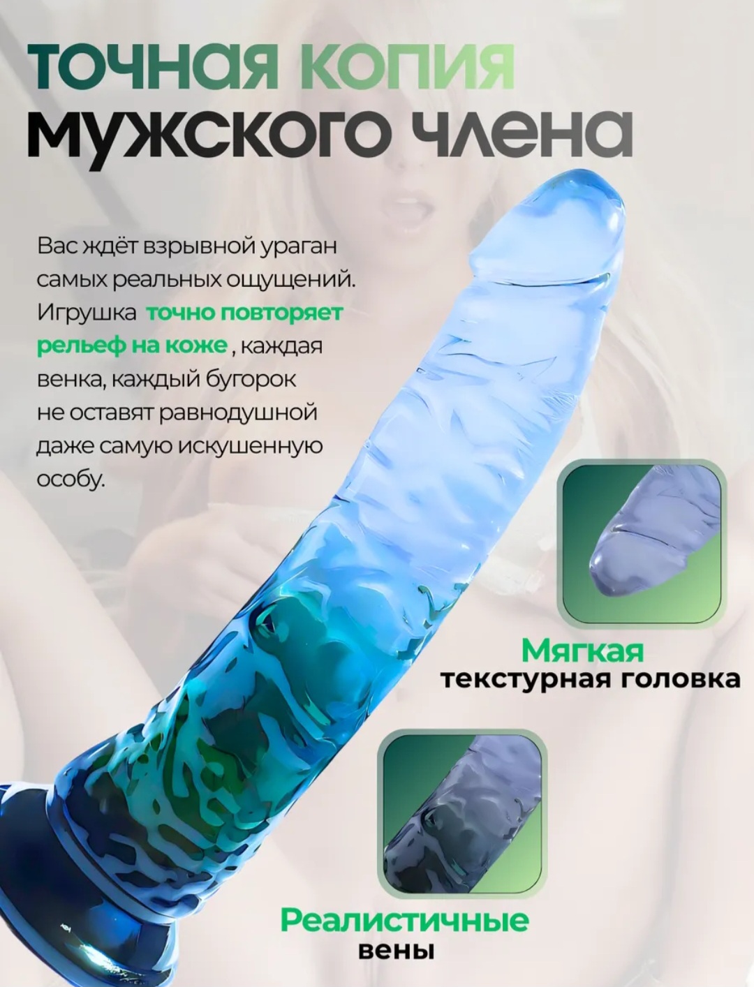 Фаллоимитатор прозрачный на присоске без мошонки наполовину зелёный
