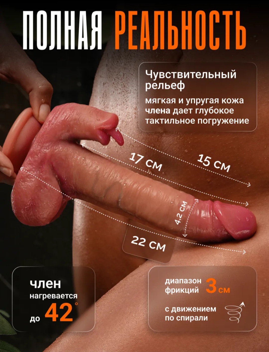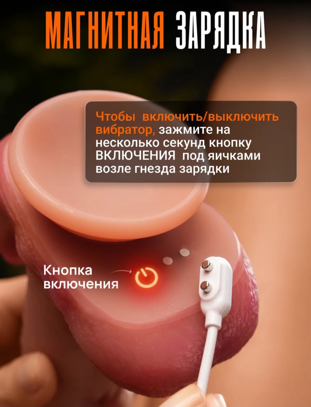 Большой фаллоимитатор на присоске киберкожа с мошонкой