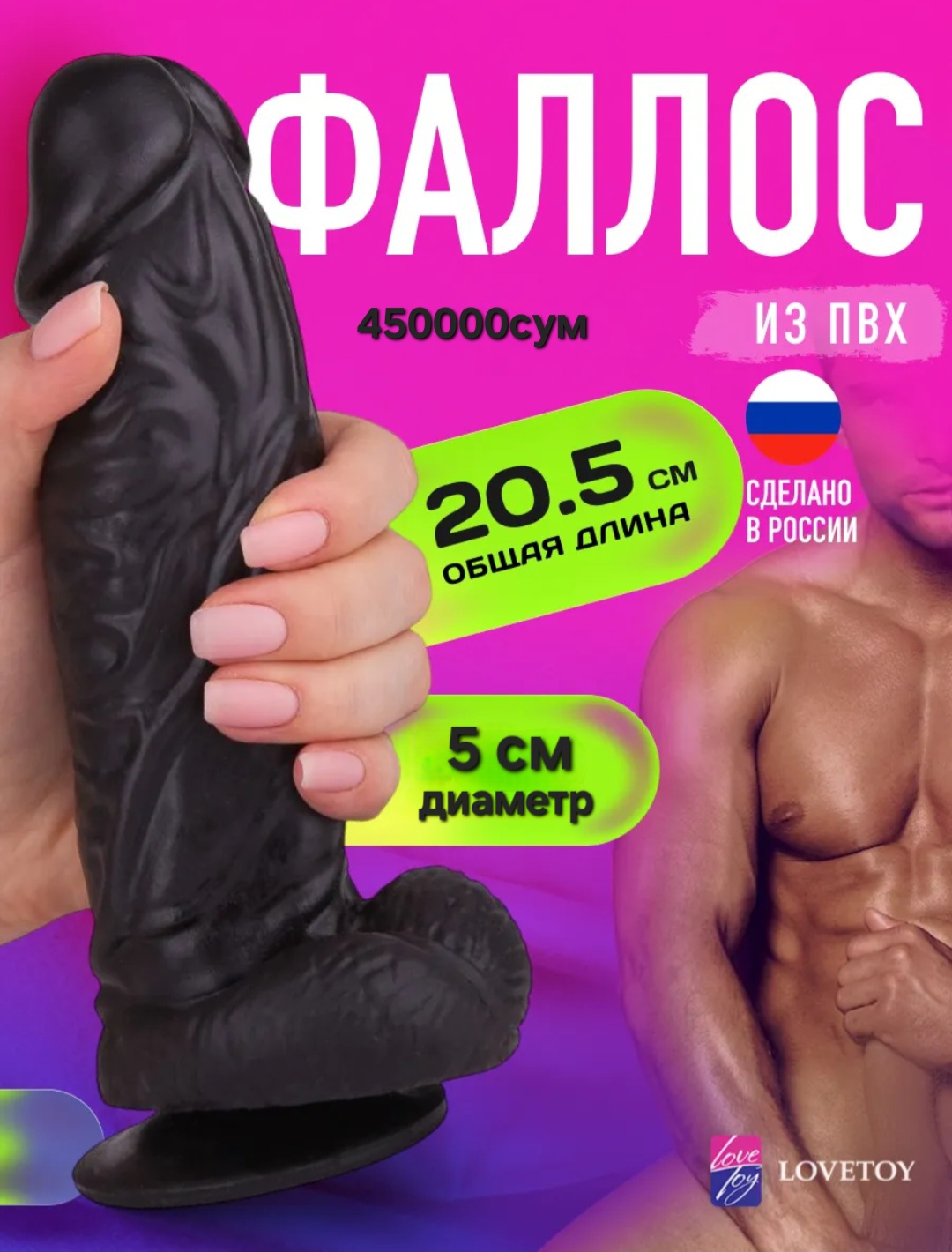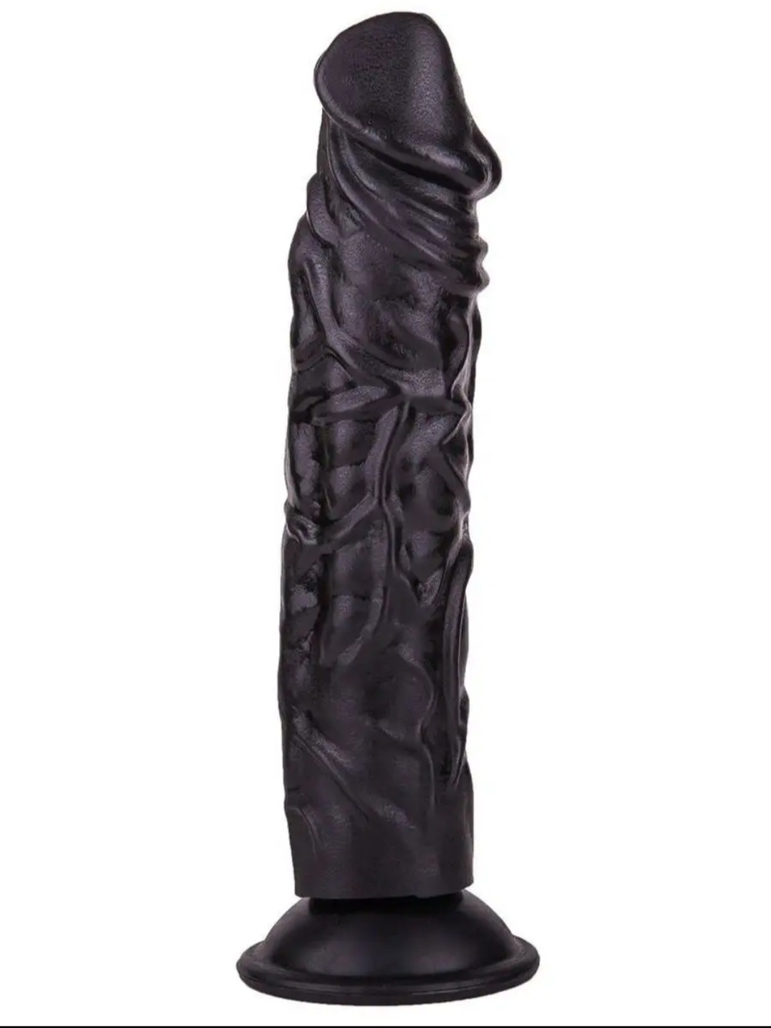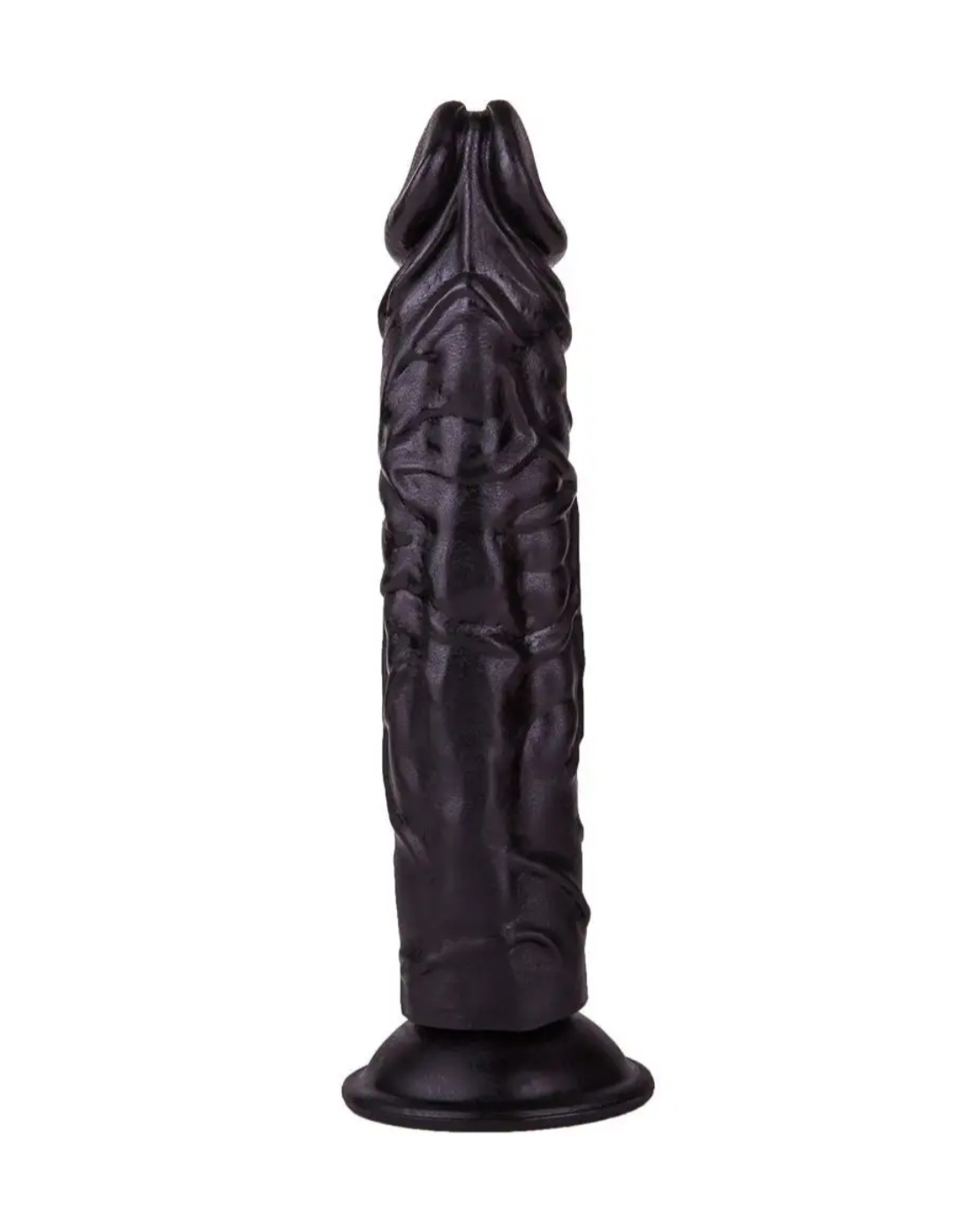 Фаллоимитатор черный на присоске с мошонкой диаметр 5см