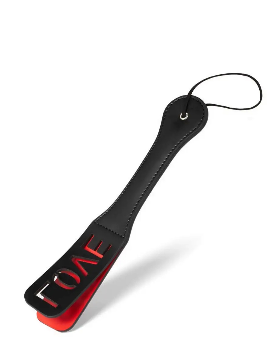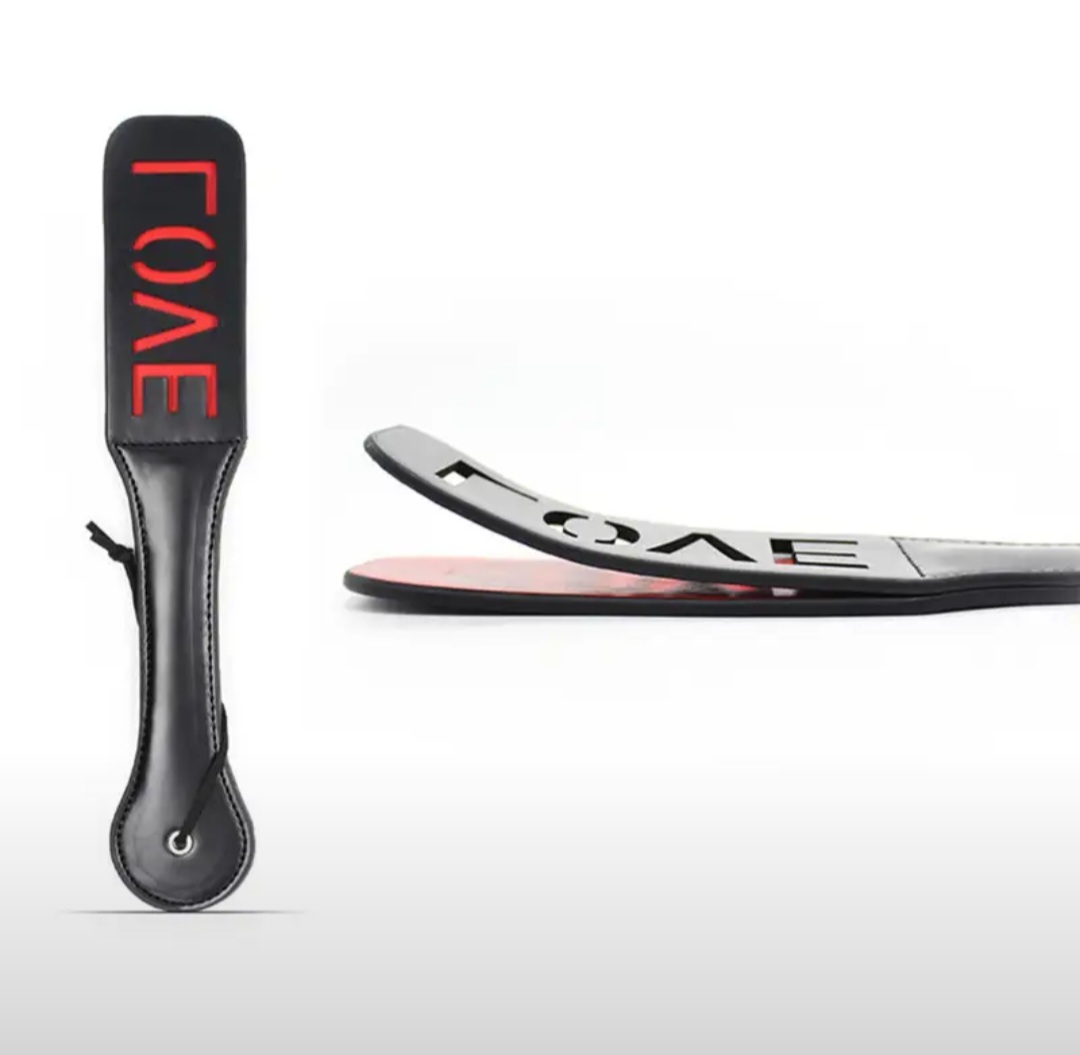 Паддл с рельефным рисунком выполнен из плотной гладкой кожи. Петля на ручке позволяет подвесить аксессуар на пояс или носить его на руке. Наконечник двойной, что усиливает ощущения от удара. Длина — 32 см. Ширина — 6 см. Длина ручки — 13 см.
